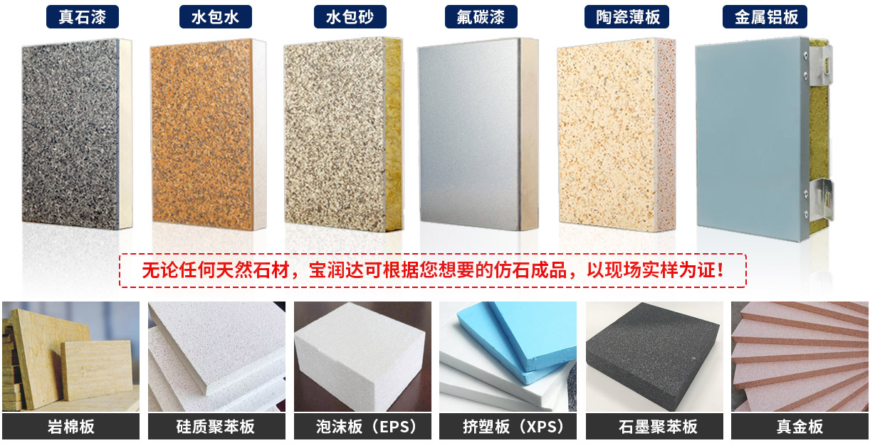 寶潤達擁有6條先進自動化一體板生產線,可生產飾面效果{真石漆、多彩漆,水包水,水包沙,實色/金屬氟碳漆、陶瓷薄板、鋁板},保溫芯材采用{ A級防火巖棉板,真金板,擠塑板,泡沫板,石墨聚苯板,硅脂聚苯板}等,滿足各種項目芯材、飾面效果定制要求,日產量12000平,極速發貨